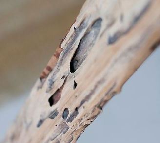 agujeritos. El poco peso revela que por dentro ha perdido madera. Ha sido